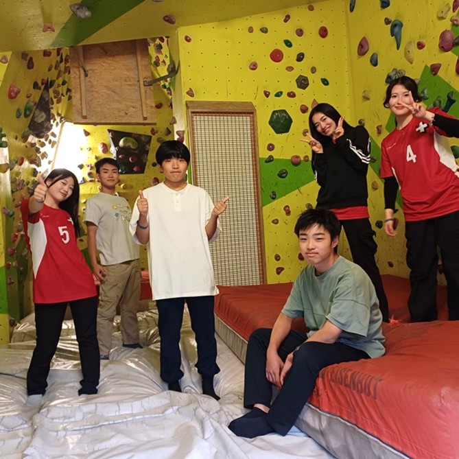 この日はあいにくの雨となりましたが、午前中は宿泊施設内でチームビルディングアクティビティーに取り組みました。様々なゲームを通して互いに協力し合う中で、自然と打ち解け、協力し合う姿が多く見られました。午後は小さな施設でボルダリングに挑戦しました。生徒たちは慎重に壁を登りながらも楽しそうに取り組み、達成感を味わう姿が見られました。夕飯後はカラオケ大会です。照明を落としミラーボールが輝く雰囲気の中で歌声を響かせ、手拍子とともに大盛り上がりとなりました。